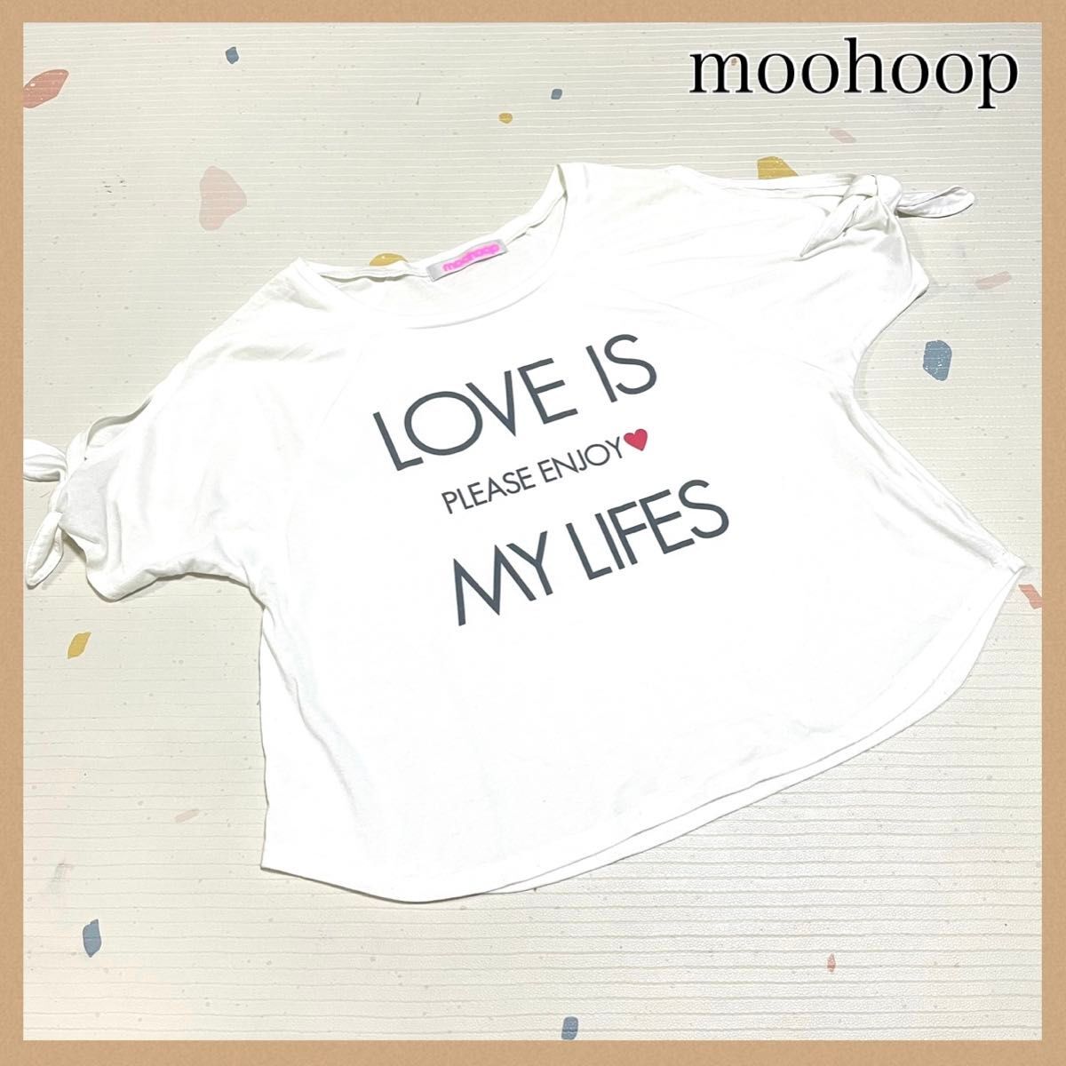 - moohoop Tシャツ 半袖 カットソー 英字プリント ホワイト レディース