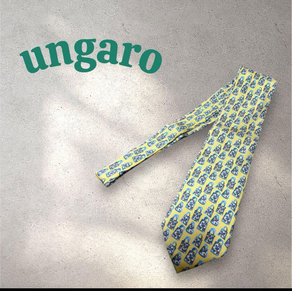 - ungaro ウンガロ バッグ柄 シルク100% ネクタイ イエロー