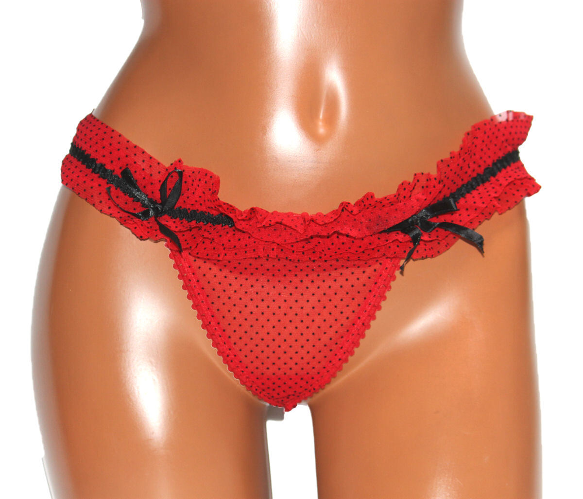 - NA Tバック セクシー パンツ レディース ショーツ パンティ ランジェリー エロ 下着 シースルー レース SS152 赤 ドット