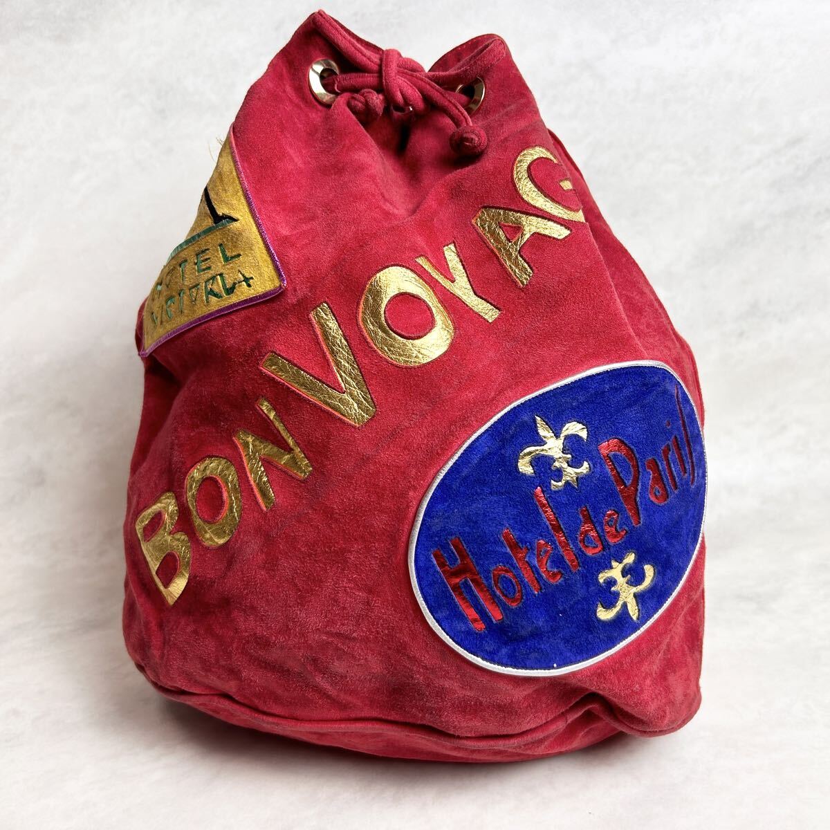 - 【極希少】BALLY バリー スエード 本革 レザー ワッペン 巾着 ショルダーバッグ ボルドー