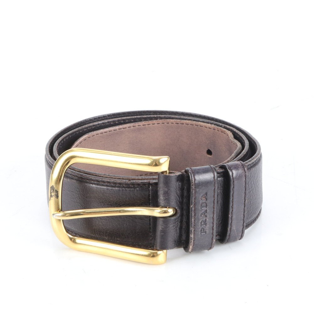 - 1円■美品■プラダ■レザー ベルト ブラウン 茶色 ゴールド バックル ビジネス 紳士 カジュアル メンズ RUE CQ24-2