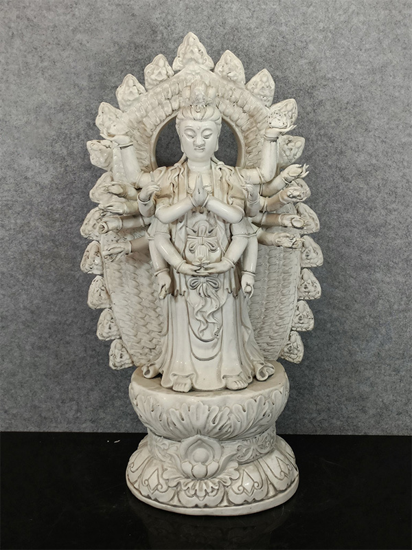> w9|2362 中国骨董 人間国宝 仏教美術 仏像【明代の徳化窯「何朝宗」款白磁掛釉千手観音です】工芸品 時代物 置物 收藏品 珍品旧蔵 伝世家珍