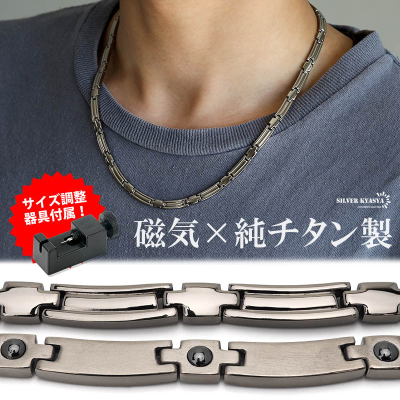 - 純チタン 磁気ネックレス シルバー Titanium チタンネックレス 軽い 首にフィット 負担がない 磁力 磁性