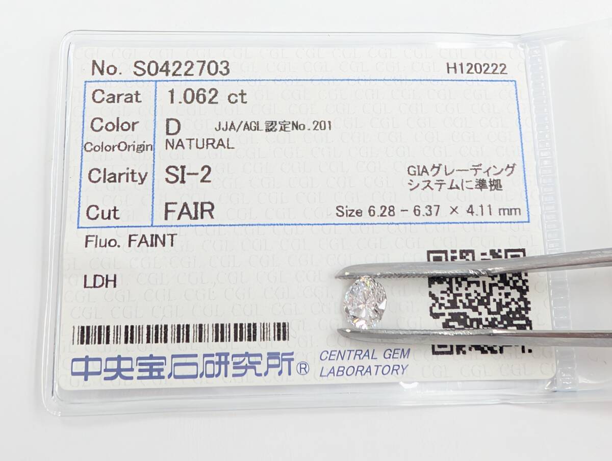 > 天然ダイヤモンド ルース 1.062ct / D / SI-2 / FAIR☆CGL 中央宝石研究所 ソーティング ダイヤ 天然石 宝石 裸石 ジュエリー