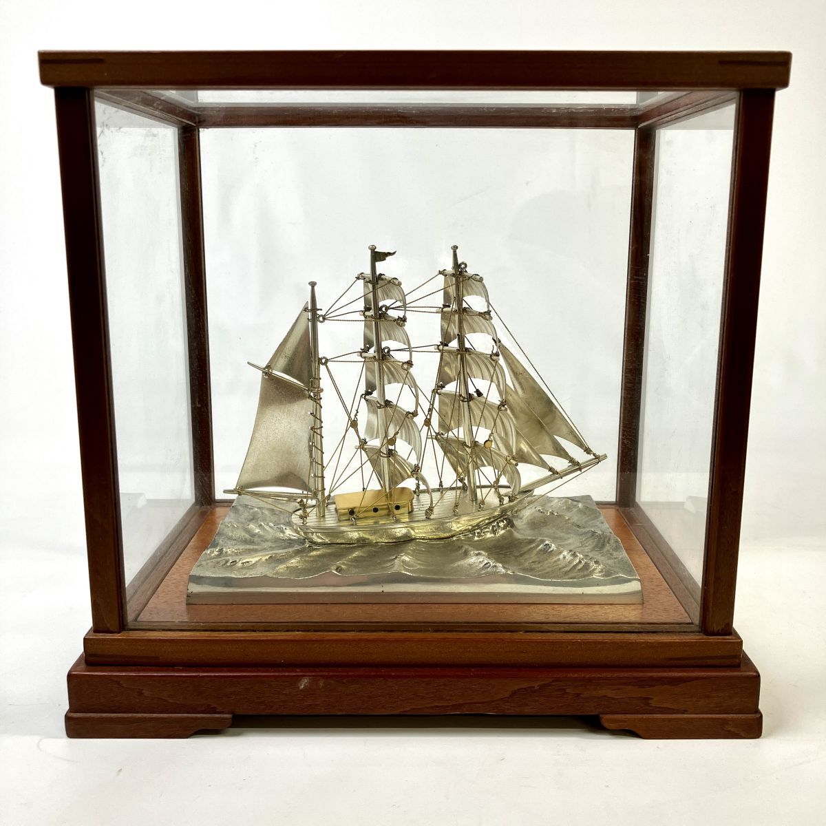 > R919-8 【銀製】※同梱不可 Silver ケース含む総重量1,384g 船 ヨット 贈答品 置物 工芸品 シルバー ガラスケース付 模型 帆船 中古 現状品