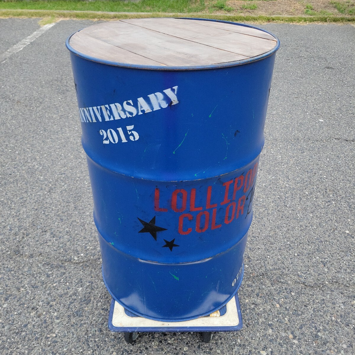 - №9057 USED 直接引取大歓迎 ドラム缶リメイク ビンテージ テーブル 直径約58.5㎝ 高さ約89㎝