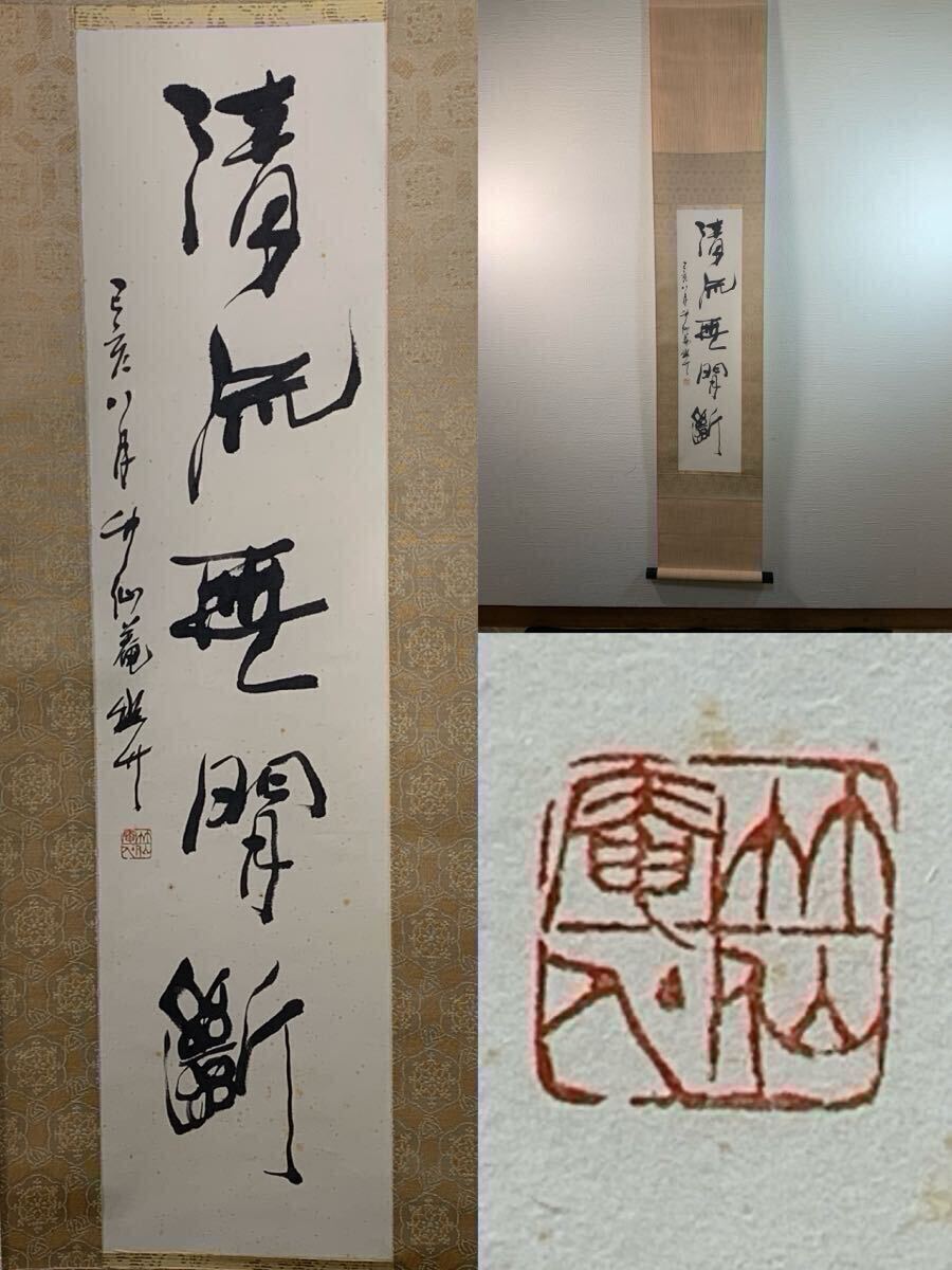 - ★掛軸★一行書 画題 清流無間断 縦143cm×28cm 落款 現状品 ★745/flok★ee380