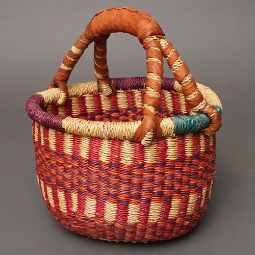 - アフリカ ブルキナファソ 半球型 バスケット カラー Sサイズ No.3 かご カゴ アフリカ雑貨 丸形