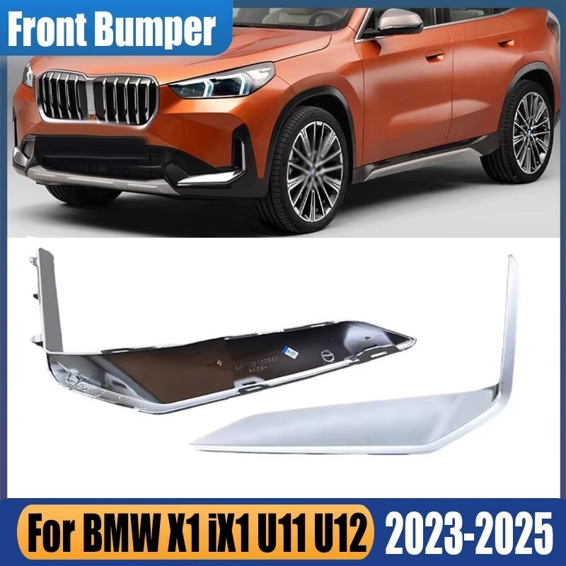 > 【送料無料】 フロントバンパー リップスポイラー シルバー メッキ BMW X1 iX1 U11 U12 2023- フロント スポイラー フォグカバー トリム