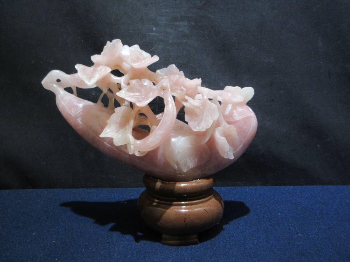- T2357 中国美術 紅水晶 瓜彫 置物 台付き 唐物