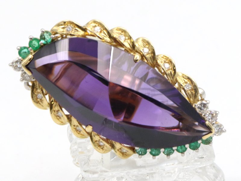 - 【 K18YG / PT900 】 指輪 アメジスト 68.44ct ダイヤ 0.82ct エメラルド 0.76ct 39.6g 18号 レディース ソーティング ☆ 新着 70315-1