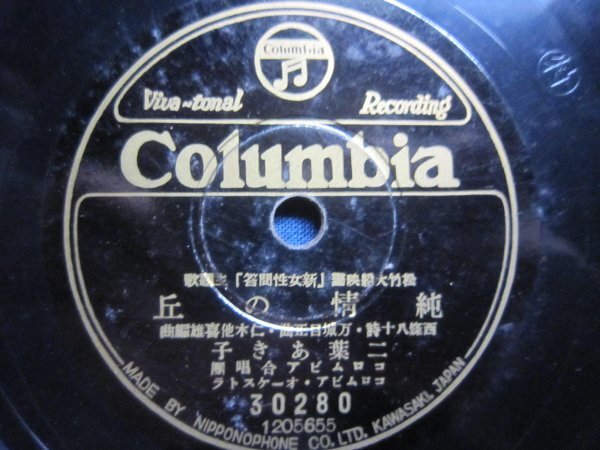 - コロムビア流行歌SP盤713★二葉あき子/純情の丘★ミスコロムビア/乙女七人★SPレコード