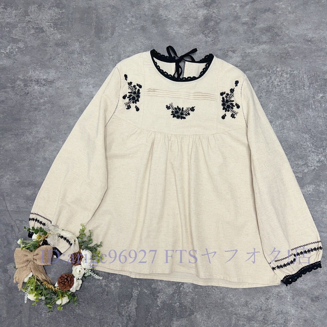 > ★新品刺花柄 チュニック ワイシャツ トップス 綿麻混 ゆったり オシャレ フリーサイズ ナチュラル ベージュ色