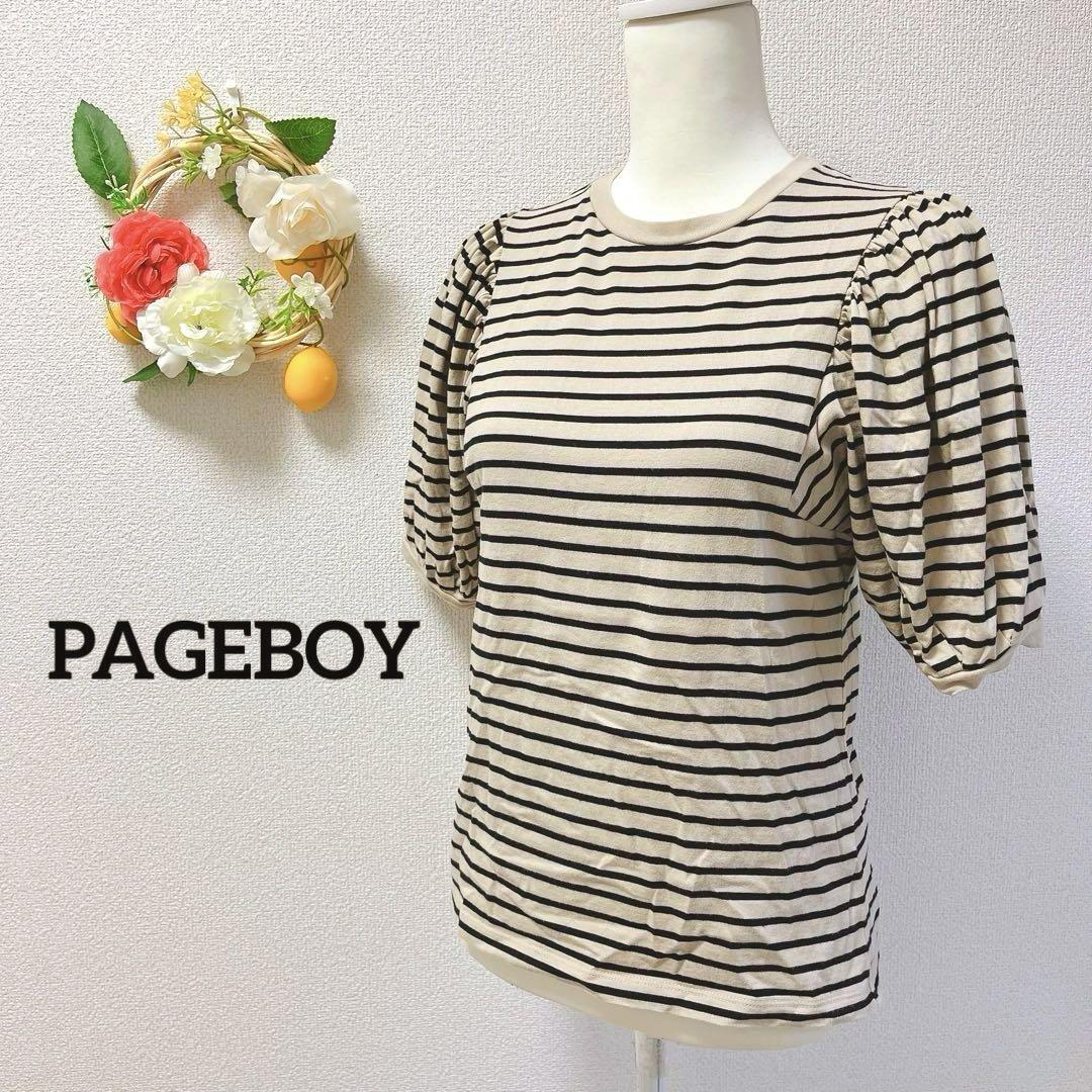 - ☆二の腕カバー☆ PAGEBOY ページボーイ カットソー バルーンスリーブ ボーダー ベージュ F
