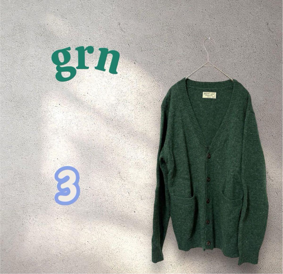 - GRN ジーアルエヌ グリーン Vネック ニットカーディガン 3