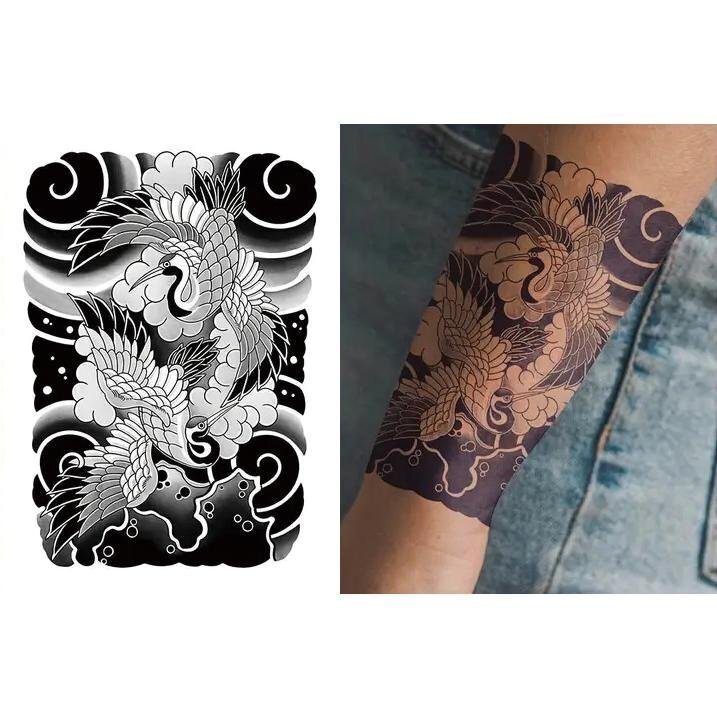 - 【タトゥーシール】★鶴 フェイクタトゥー 17cm×24cm 腕 脚 刺青シール 和柄 防水・耐久性あり! リアル和彫 (HY-017)