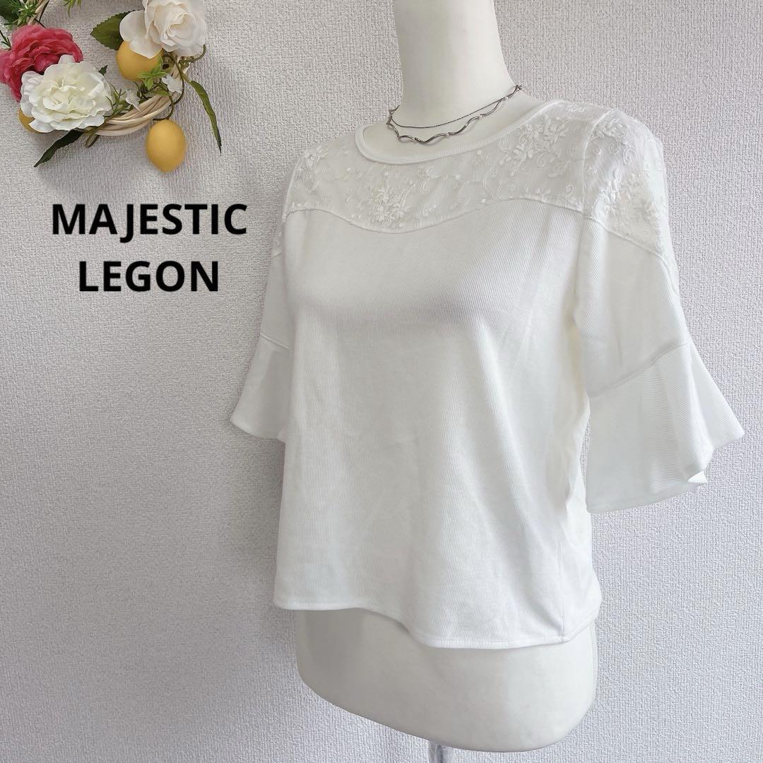 > ☆美品☆ MAJESTIC LEGON マジェスティックレゴン カットソー ベルスリーブ レース リボン 白 ホワイト S
