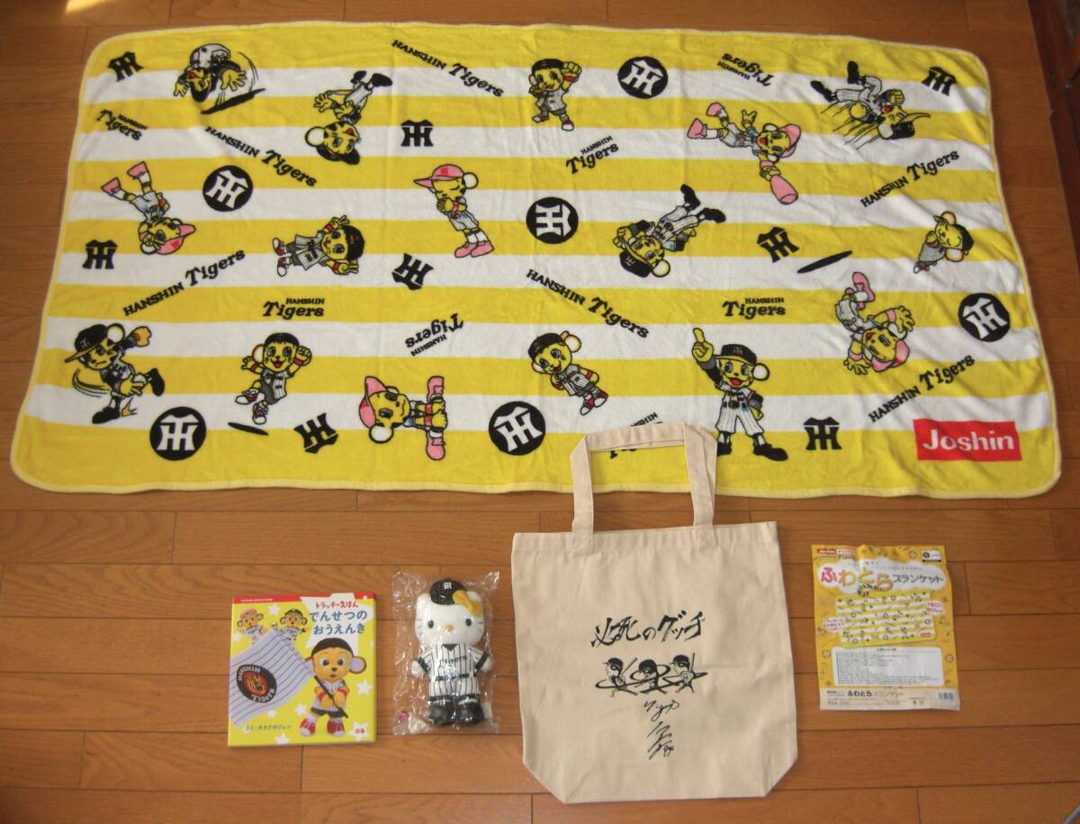 - ★新品 阪神タイガース グッズ福袋 ふわとらブランケット/トラッキーえほん/公認ハローキティぬいぐるみ/原口必死のグッチバッグ