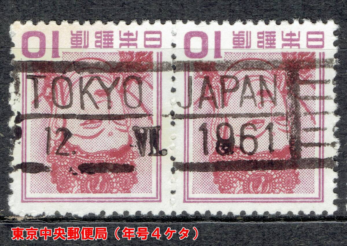 - 【使用済・普通切手の欧文印】観音菩薩像10円ペア(年号4ケタ)Q