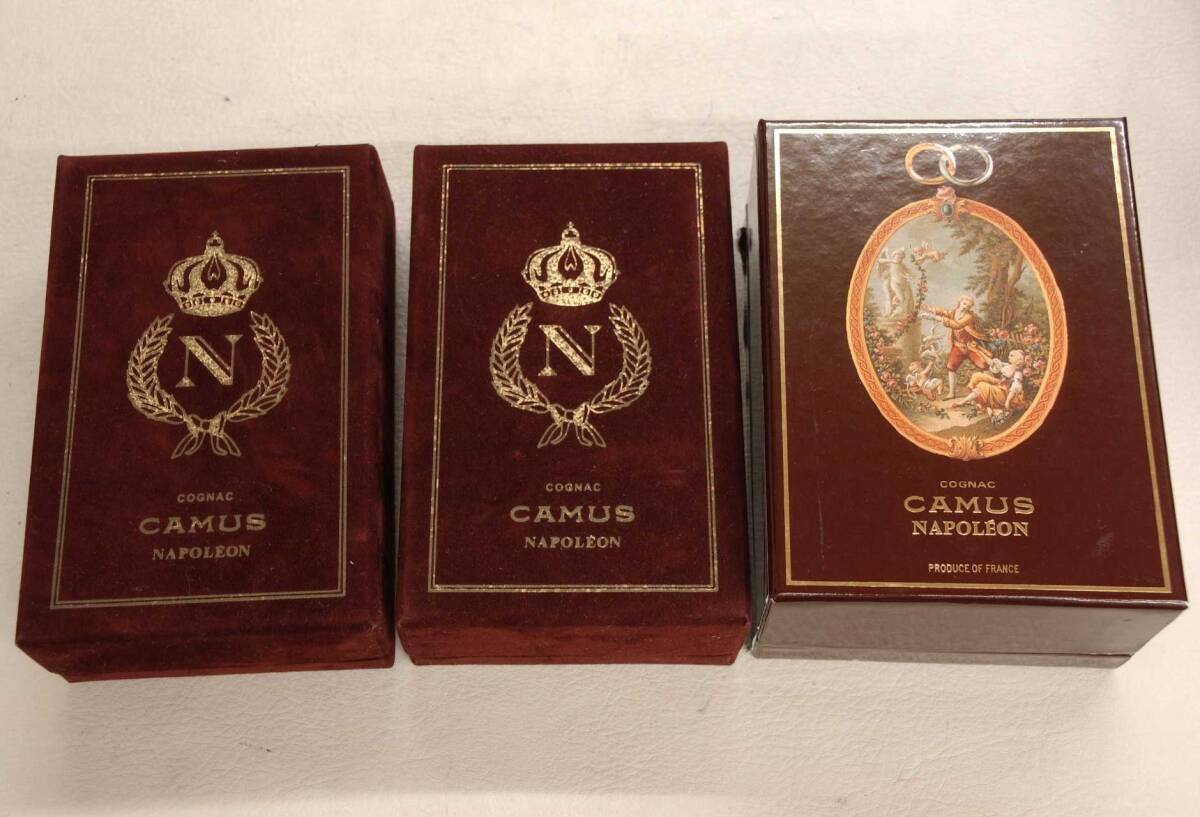 - 箱付 3本 まとめて 未開栓 古酒 CAMUS Napoleon ■ ミニボトル ナポレオン ミニブック/ラヴァーズリング ■ 陶器ボトル