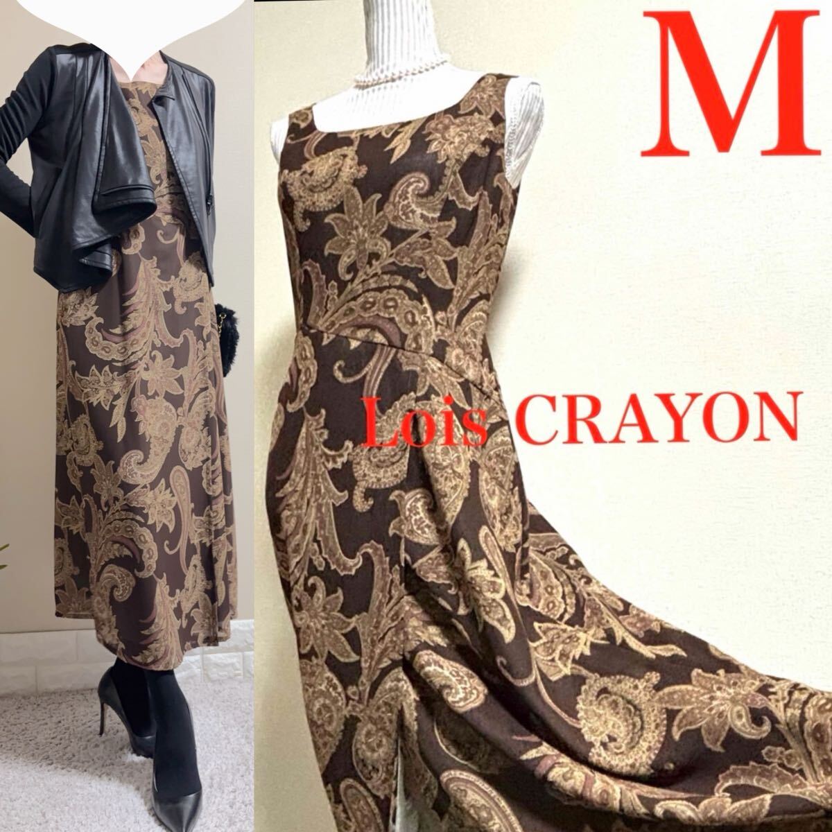 - 希少!Lois CRAYON ロイスクレヨン ペイズリー ジョーゼット 更紗 ロングワンピース M ブラウン ベージュ