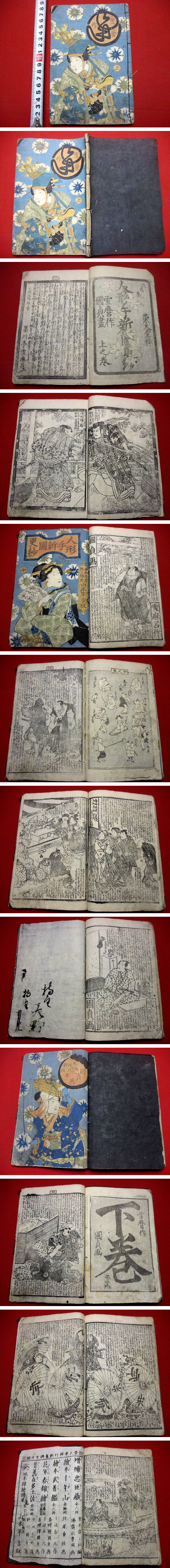 - b538◇ 天保9年 合巻 人形手新図更紗3冊揃 国貞 雪麿 最後欠丁あり 和本 古書 古文書