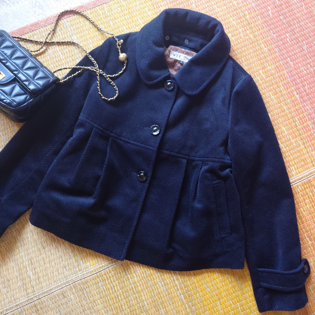 - ビスショートコート ジャケット アウター襟取外しノーカラー