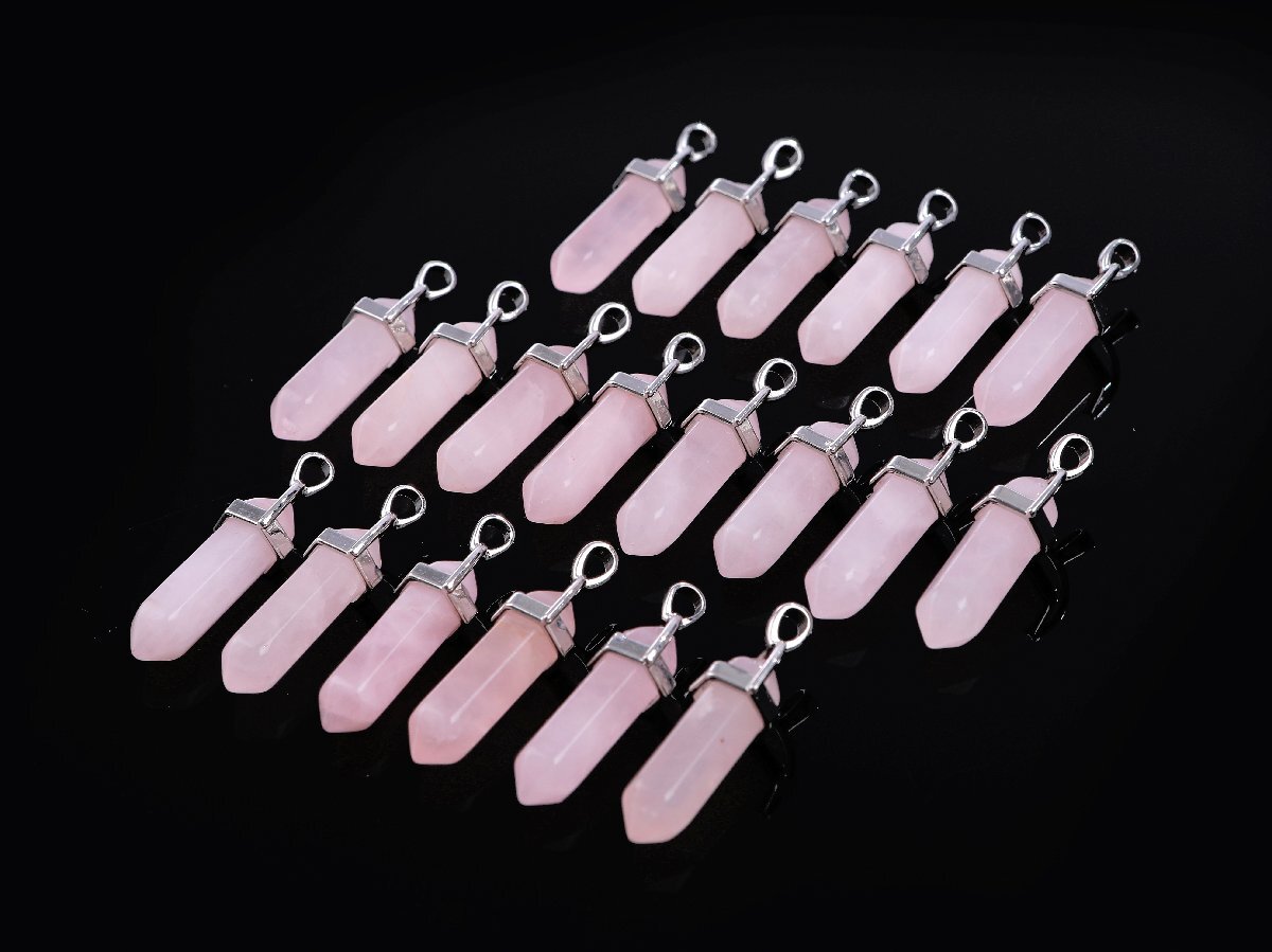- ゆうパケット発送★おまとめて大量 天然石 ローズクォーツ 六角柱ペンダントトップ 20点セット チャーム まとめ売り アクセサリー MSY-Nh5