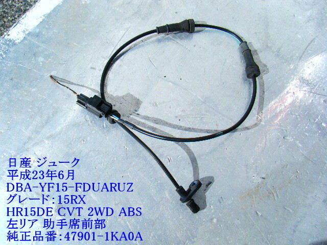 > ◆YF15 日産 ジューク H23年 左リア ABSセンサー スピードセンサー 助手席後部 47901-1KA0A 純正 [14196]