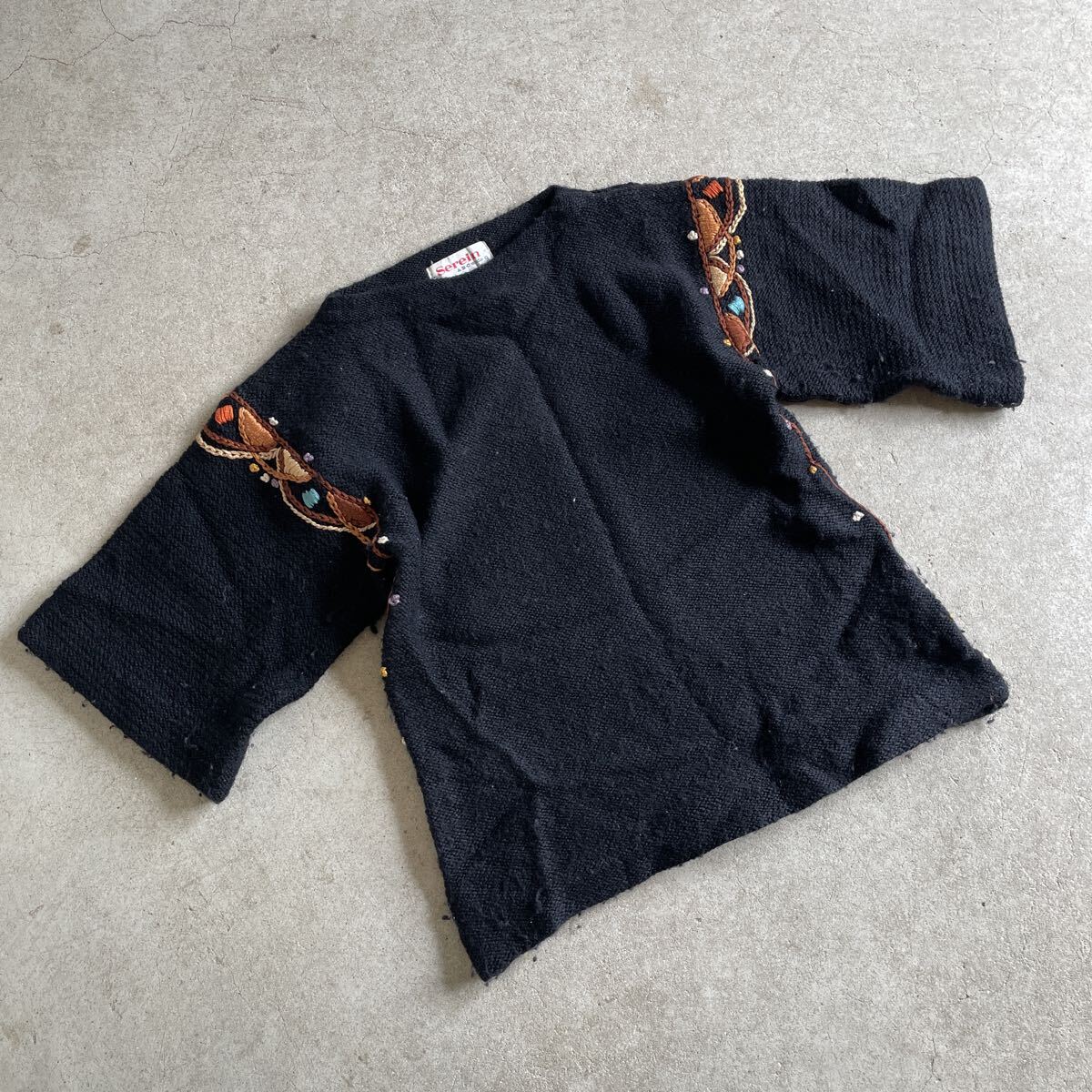 > ビンテージ 刺繍 ウール100%デザイン ニット セーター 4 ヴィンテージ 黒 ブラック レディース カットソー 70s 80s レトロ 国産古着 日本製