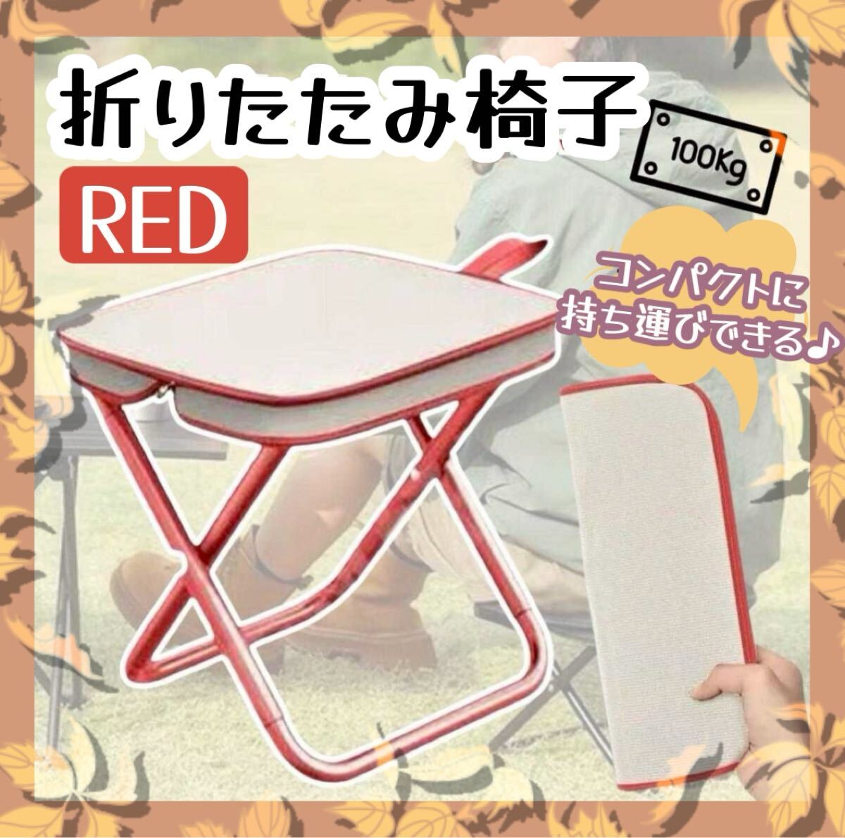 - 折りたたみチェア 折りたたみ椅子 スツール 軽量 携帯 ジッパー収納 耐荷重100kg レッド
