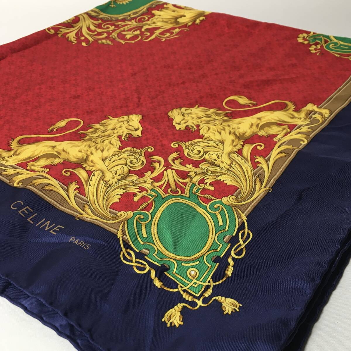 - 78B299|美品|セリーヌ スカーフ シルク ネイビー タグあり