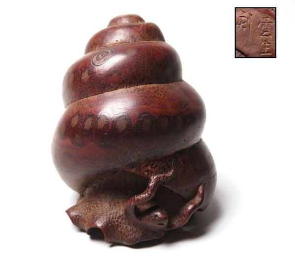 - 【11831】明治期 堤物 竹根 ヤドカリ 在銘 根付(初品・買取品)