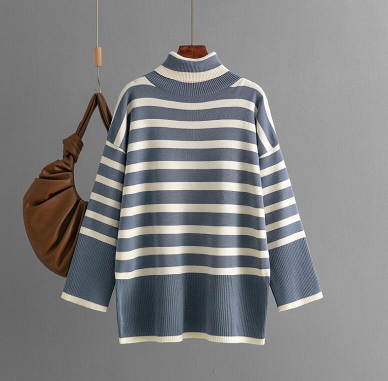 - 342 ニットセーターladiesレディース ◇ 魅惑Styleセクシー ◇sexy 上質 ボーダー柄 ブルー