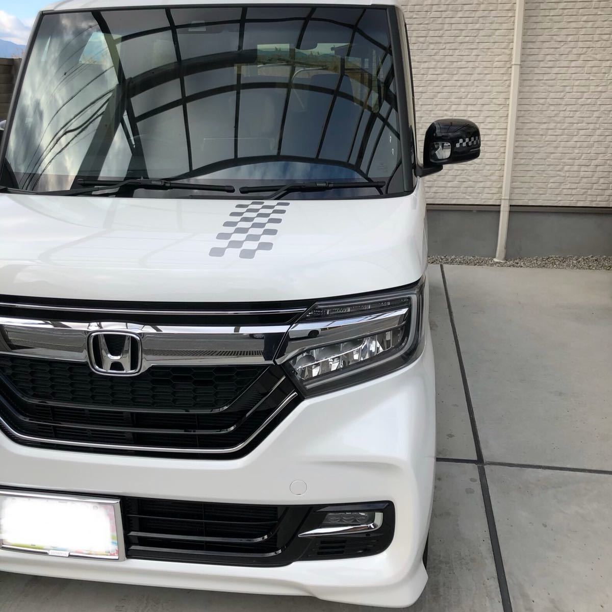 - N box ボンネット ステッカー シルバー チェック柄 エヌボックス