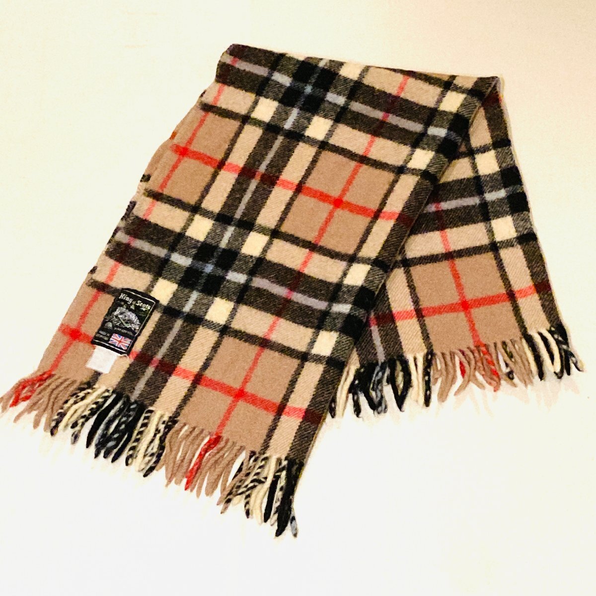 > 【100円スタート】King of Scots MADE IN GT.BRITAIN PURE NEW WOOL ウール ブランケット/マフラー ノバチェック 66 × 93cm