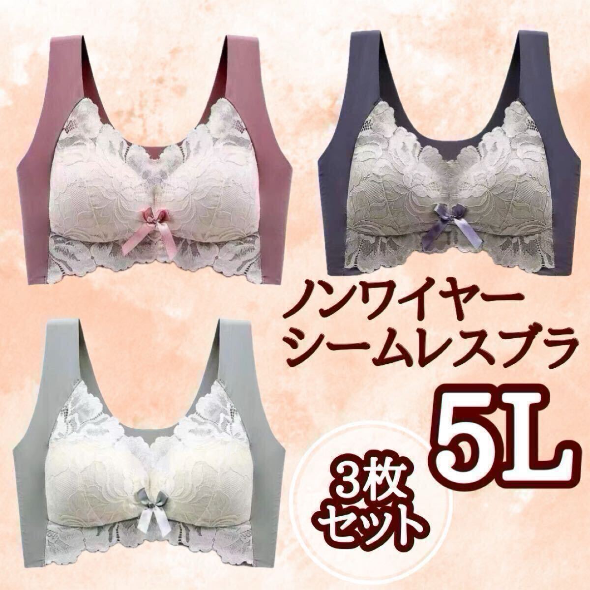 - 5L シームレスブラ ナイトブラ ノンワイヤー 大きいサイズ ゆったり 3枚 ブラジャー