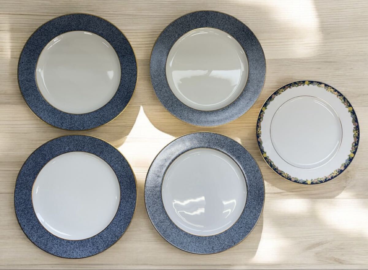> BERNARDAUD ベルナルド Limoges Fiorini / 皿 プレート 洋食器 / 5枚セット / 直径 26cm 29.5cm / 金彩 花柄 マーブル柄 / 高級磁器