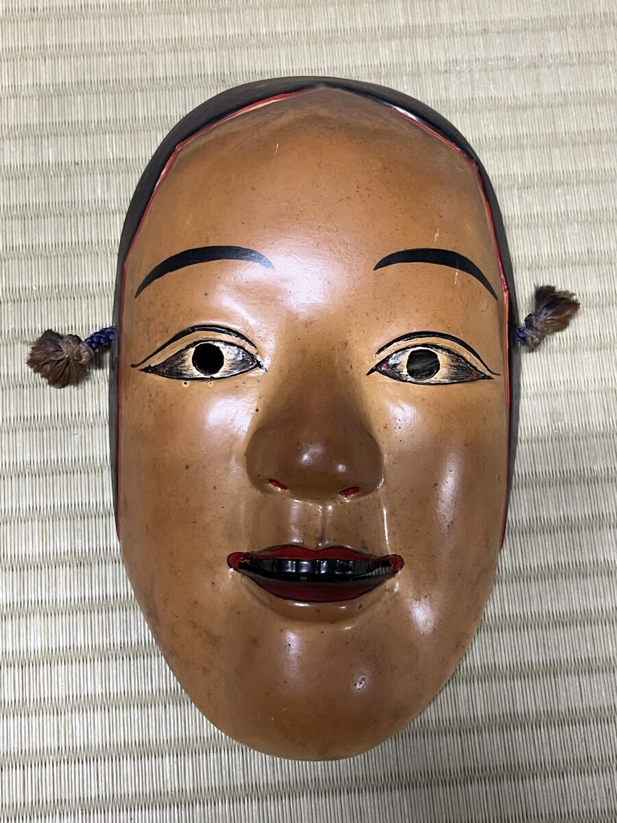 - 備中神楽 在銘 彫幸作 茂幸? 小面 お面 能面 木彫 能楽 伝統工芸 神楽面