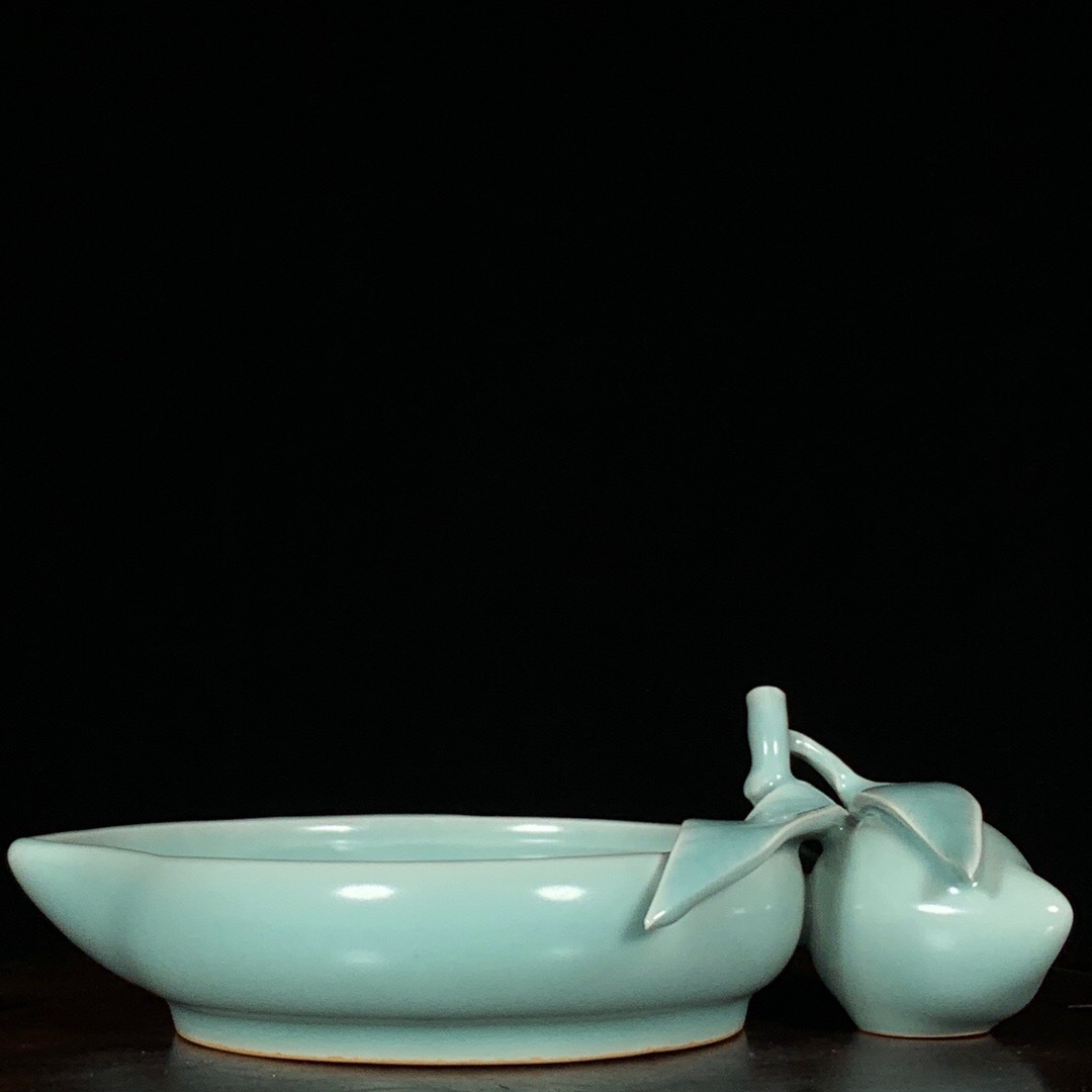 - ▽鴻▽ 宋 古陶瓷品 龍泉窯 粉青釉 桃形洗 陶藝 古賞物 古董品 時代物 稀少珍品 中国古玩 中国古美術