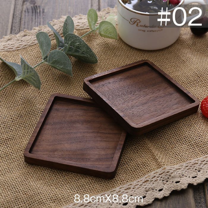 - コースター 木製 断熱 簡約丸型 正方形 茶托 断熱 茶パッド 滑り止め 木製 2枚セット 防水 クルミ 8.8cm 和風コースター ☆#02