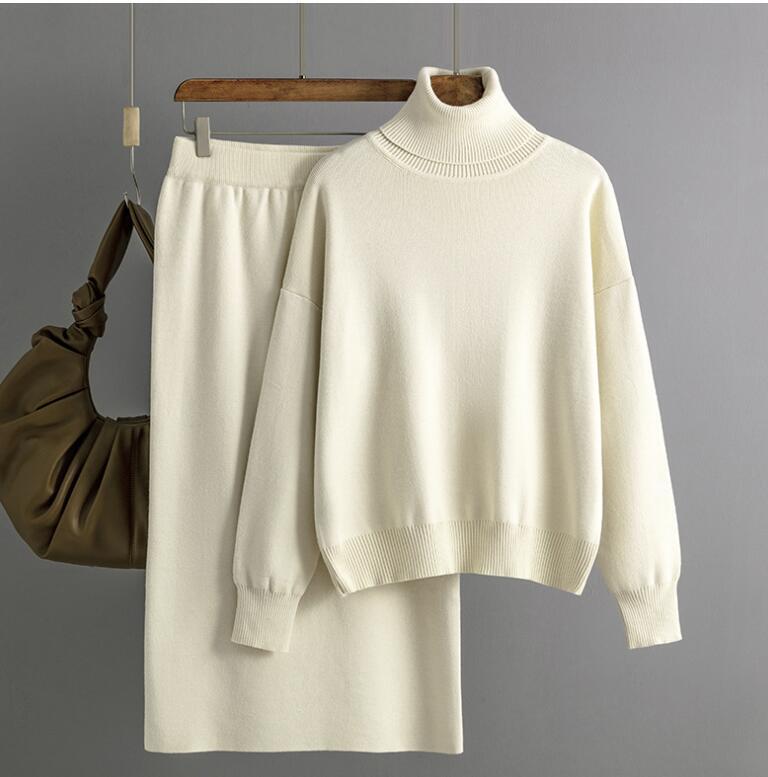 - 343 パンツスーツladiesレディース ◇ ニット素材 カジュアル 上質 防寒 タートルネック アイボリー