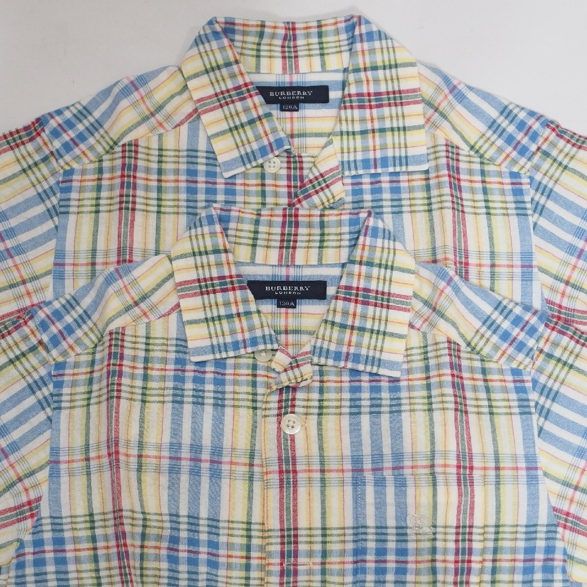 - BURBERRY◆バーバリー 男の子用 チェック柄 半袖シャツ(黄・水・赤)120サイズ 2点セット・双子 ふたごちゃんに◆USED K