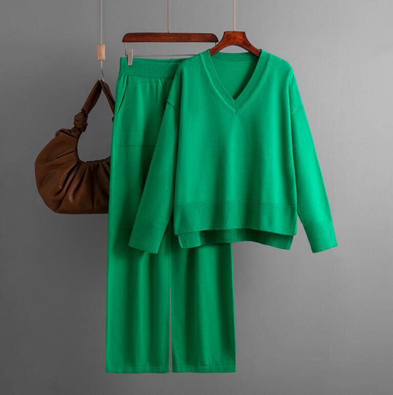 - 343 パンツスーツladiesレディース ◇ 魅惑Styleセクシー ◇ニット素材 カジュアル 上質 防寒 緑