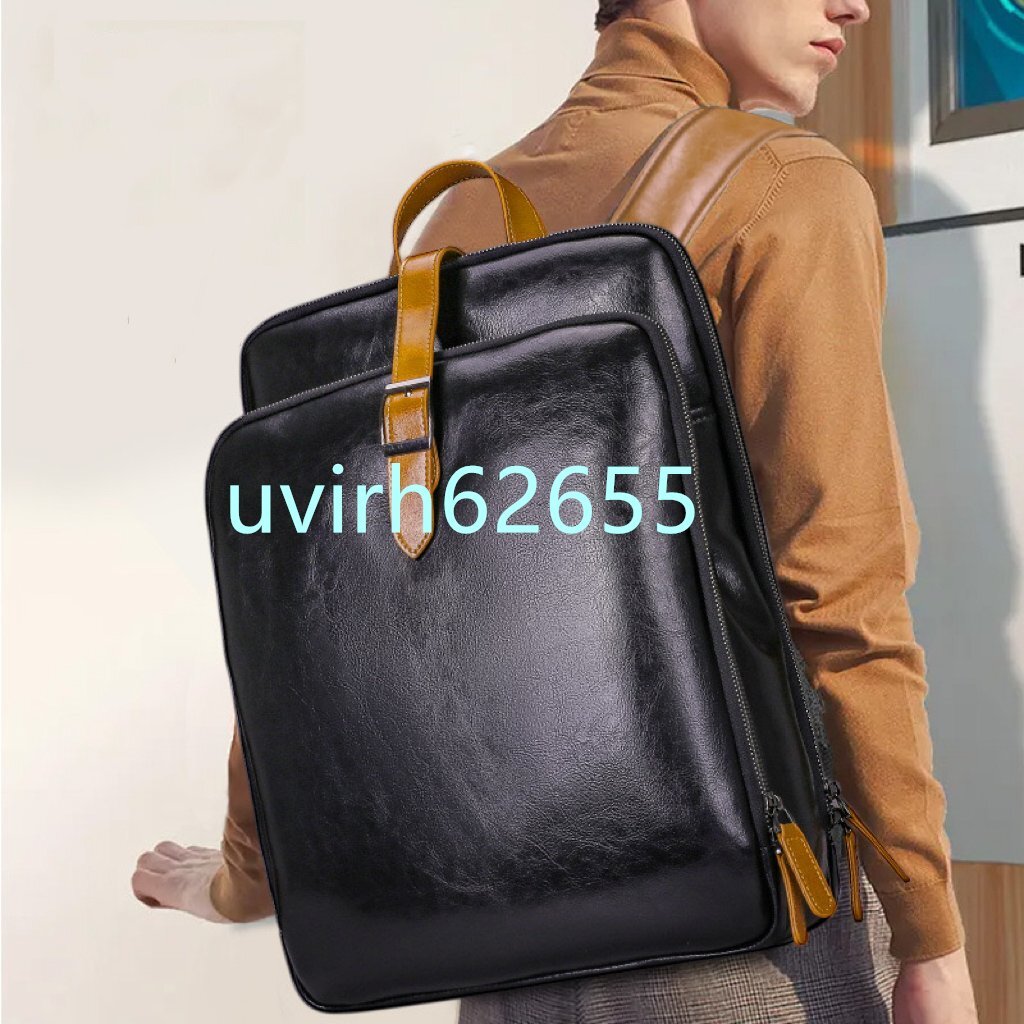 > リュック メンズ 本革 牛革 PC収納 A4 レザー 大容量 多機能 革 リュックサック バックパック ビジネスリュック 通勤通学 出張旅行ブラック