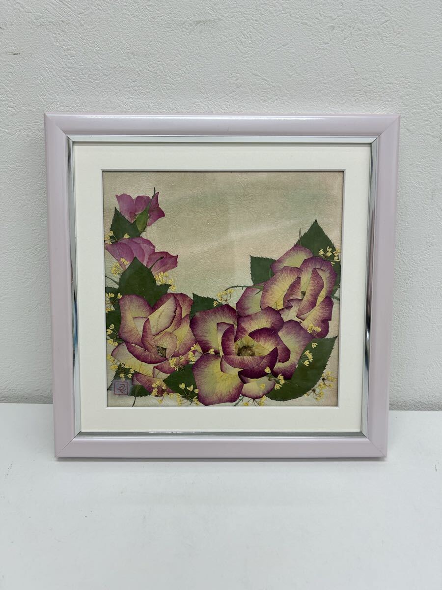 - ② 押し花絵(紫、ピンク)額縁25cmx25cm