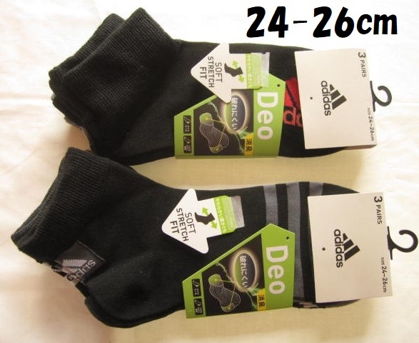 > *送料無料*新品*アディダス*24-26㎝*ソックス3足×2*Deo*消臭・ワイドヒール・つま先かかと補強*やわらかい履きぐち*adidas*