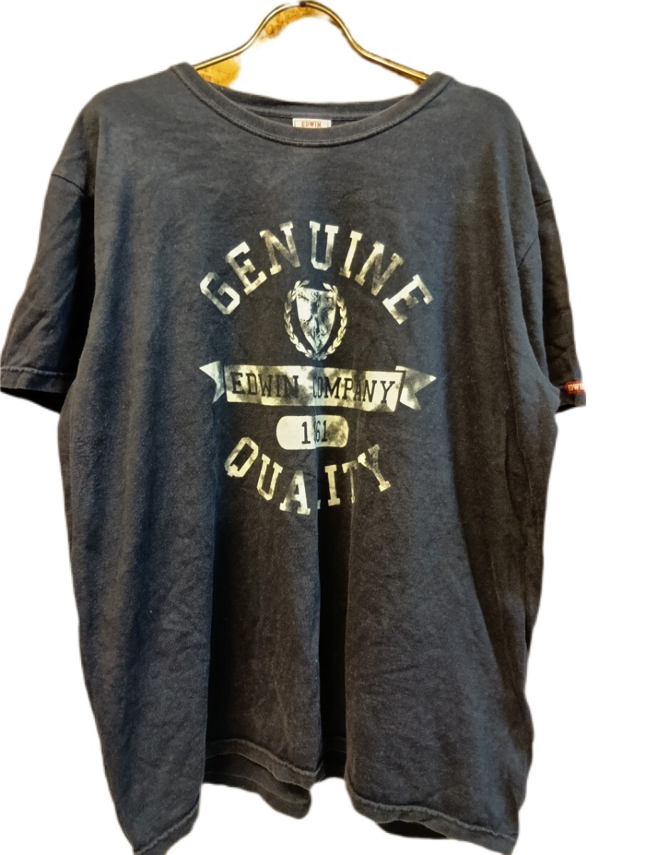 - EDWIN 半袖 カレッジプリント Tシャツ(XL) ネイビー