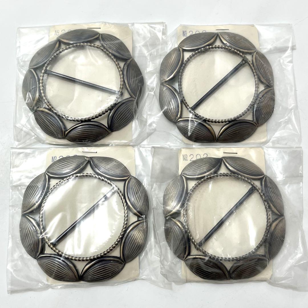- ば18【希少まとめ売り】アンティーク 真鍮 バックル 4個セット 金属パーツ ◇バッグ修理・ベルトリメイク・衣装製作・手芸資材 丸型花