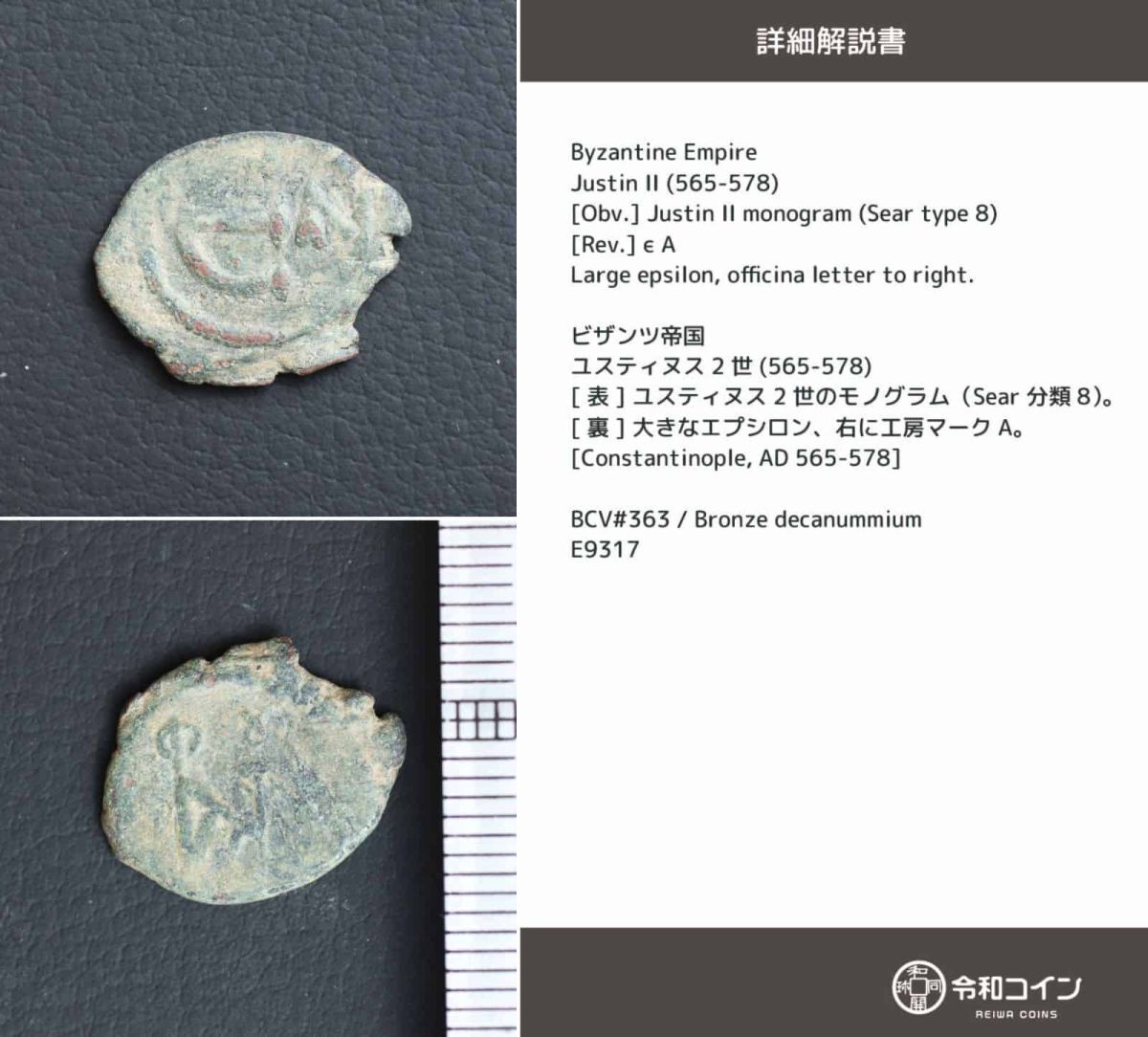 > *[令]ユスティヌス2世 ビザンツ帝国コイン【詳細説明カード付】古代ギリシャ,古代ギリシア,古代ローマ[E9317]7r6